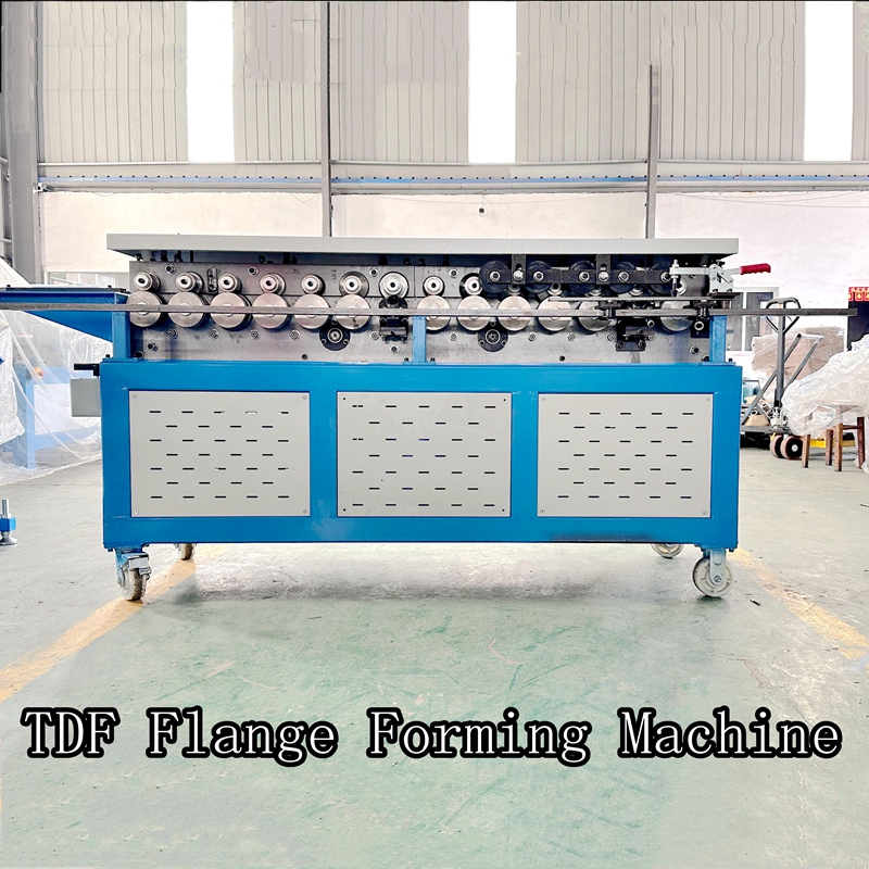 TDF Flange Forming Machine is a molding equipment specially used to make common plate flanges (also known as flangeless air ducts). This flange system is especially suitable for ventilation ducts with small cross-sectional areas. The following is a detailed introduction to the TDF common plate flange machine: 1.Features and advantages (1)Low cost: The air duct connection port made by the TDF Flange Forming Machine adopts direct bite or intermediate piece bite. Compared with the traditional flange connection, the material cost of the flange and accessories is saved. (2)Good sealing performance: The sealing performance of the air duct without flange connection is better than that of traditional flange connection, reducing the air leakage rate. (3)Simple installation: No complicated installation process of flanges and accessories is required, which simplifies the construction process and improves installation efficiency. (4)Wide scope of application: Especially suitable for the production of small air duct factories, and also suitable for the needs of markets such as East Asia, Australia and the Americas. 2.Technical parameters According to publicly released information, the technical parameters of TDF Flange Forming Machines may include but are not limited to the following (taking a certain model as an example): (1)Model: T-12 (2)Plate thickness: flange 0.4-1.2 MM, card code 1.0-1.2MM (3)Material: galvanized steel plate (4)Material strength: ≤235MPa (5)Line speed: 8M/MIN (6)Roller material: 40CR (or 45# steel, GR15, etc., specific materials may vary depending on the manufacturer) (7)Forming passes: 21 passes (8)Forming station: The standard station is used to make TDF flanges, and the auxiliary station is used to make flange card codes. (9)Equipped with: 15 pairs of forming rollers 3.Application scenarios TDF Flange Forming Machines are widely used in central air conditioning ventilation systems, industrial plant ventilation, commercial building ventilation and other fields. With the increasing requirements for energy conservation and environmental protection, flangeless air ducts have gradually become the mainstream in the market due to their excellent sealing performance and lower cost. 4. Combined use The TDF Flange Forming Machine can be combined with a seaming machine, a beading machine, a shearing machine, a folding machine, etc. to form a simple or fully automatic air duct production line. This combination not only improves production efficiency, but also saves costs and reduces expenses for customers. 5. Market and Prospects With the global emphasis on energy conservation, environmental protection and sustainable development, as well as the rapid development of the construction industry, the market demand for TDF Flange Forming Machines continues to grow. Especially in markets such as East Asia, Australia and America, TDF common plate flange machines have been widely welcomed due to their exquisite appearance and excellent performance. In summary, the TDF Flange Forming Machine is an efficient and low-cost air duct production equipment with broad market prospects and application space.
