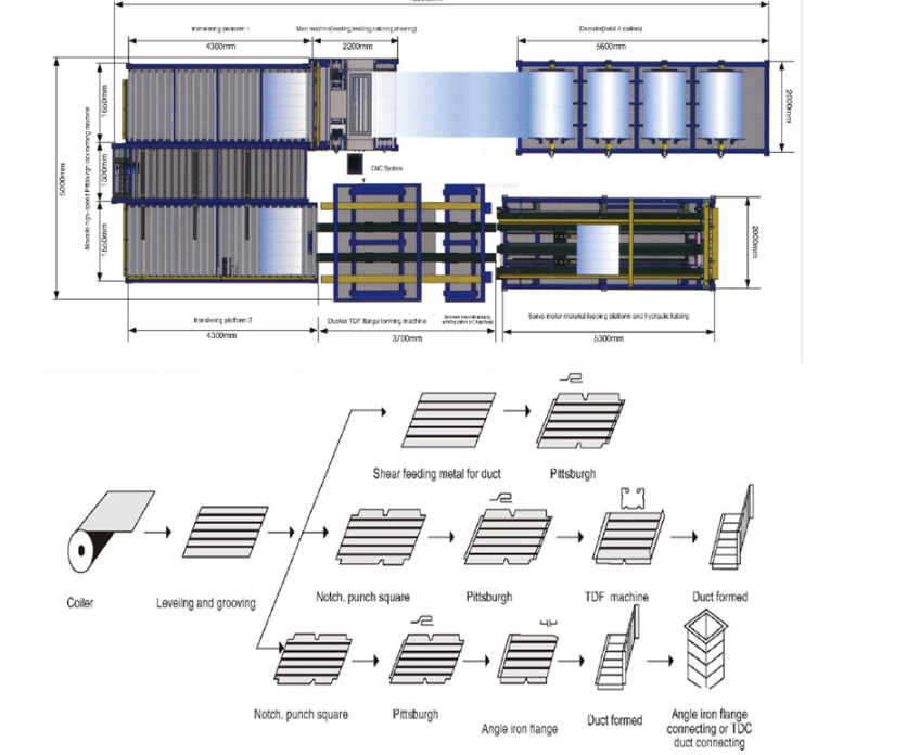 The Auto Duct Production Line automates each step of the duct-making process to ensure a seamless, error-free workflow: